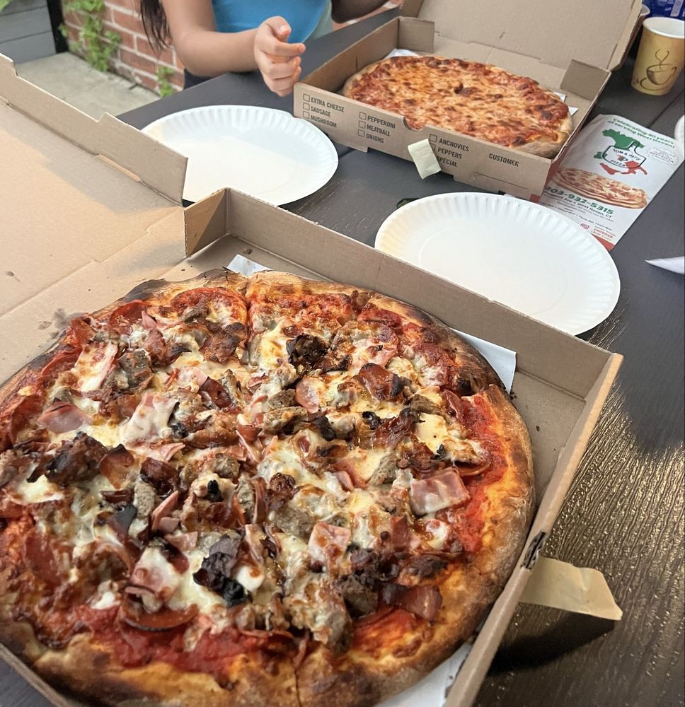 Tom and Pat's Pizza, located at 9 Prospect Ave in West Haven, CT, offers a delightful array of mouth-watering pizzas and other delicious options. From classic Cheese Pizza to the hearty Sicilian Pizza, each slice is packed with flavor. Their Specialty Pizzas, like the Meat Lovers and Clam Casino, are a must-try. Customers rave about the delicious food, reasonable prices, and excellent service. The cozy interior is adorned with charming decorations and dad jokes, creating a welcoming atmosphere. Outdoor seating is available for those who prefer al fresco dining. Whether you're looking for a quick lunch or a leisurely dinner, Tom and Pat's has something for everyone. Don't miss out on their famous pizza rolls and calzones – they're a hit with both locals and visitors alike. With top-notch dishes and friendly staff, a visit to Tom and Pat's Pizza is sure to be a memorable dining experience.